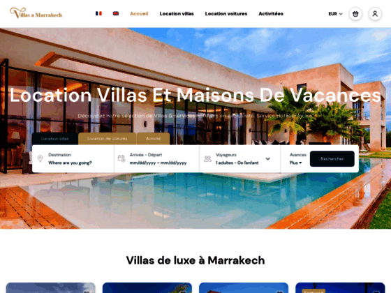 Villas a Marrakech( 2 visites )Louer une villa à Marrakech avec Villas Amarrakech Management Tourism Villas Amarrakech, spécialisé dans la location de villas à Marrakech, est l’interlocuteur idéal pour vos vacances dans la Ville Ocre. , Villas Amarrakech c’est avant tout une équipe de passionnés qui a envie de partager avec vous son amour pour Marrakech et ses richesses, le tout dans un cadre propice à la détente et au repos. Pour que vous puissiez passer un agréable séjour, Villas Amarrakech vous propose de superbes villas pour une location saisonnière ou longue durée